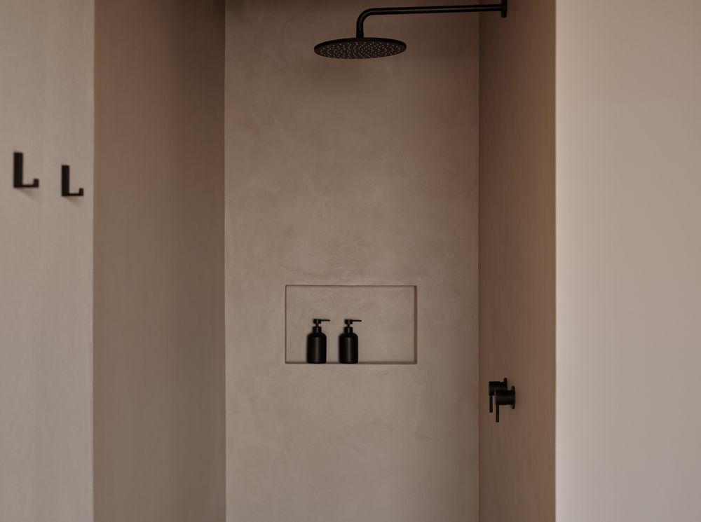 2 bagni di design con docce XL a pioggia e linea di cura biologica di alta qualità